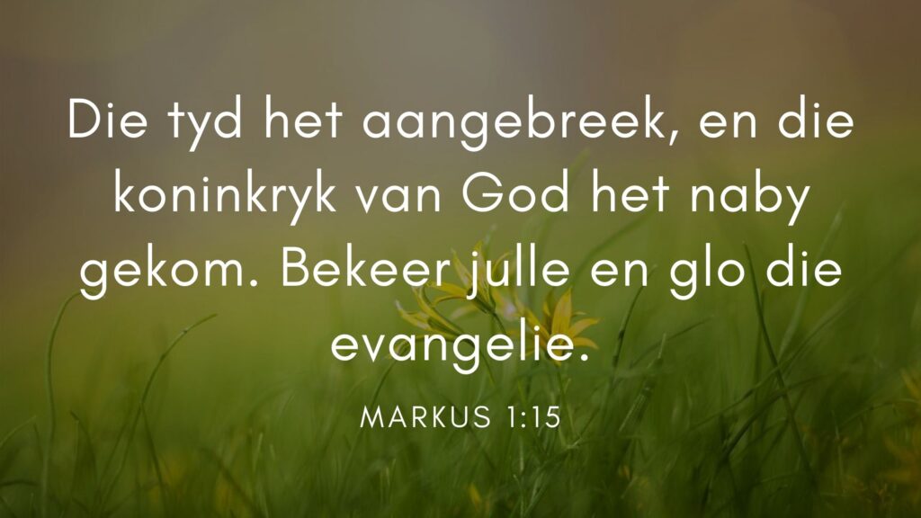 Hy sê dat die koninkryk van God naby gekom het, dat die mense hulle moet bekeer en die evangelie moet glo.