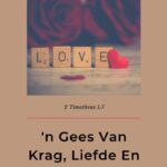 Volgende week gaan ons gesels oor die drie (of vier, as mens die Engelse vertaling ook in ag neem!) wat die Here wél vir ons gegee het: krag, liefde, selfbeheersing en ‘n gesonde verstand.